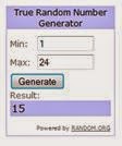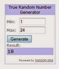 Yhdeltä henkilöltä oli kaksi kommenttia (lisäkommentti), joista toinen otettiin laskuista pois. Näin ollen arvonta suoritettiin 24 kommentin välillä. Tässä alla vielä voittajanumerot Random.orgilla arpoen.