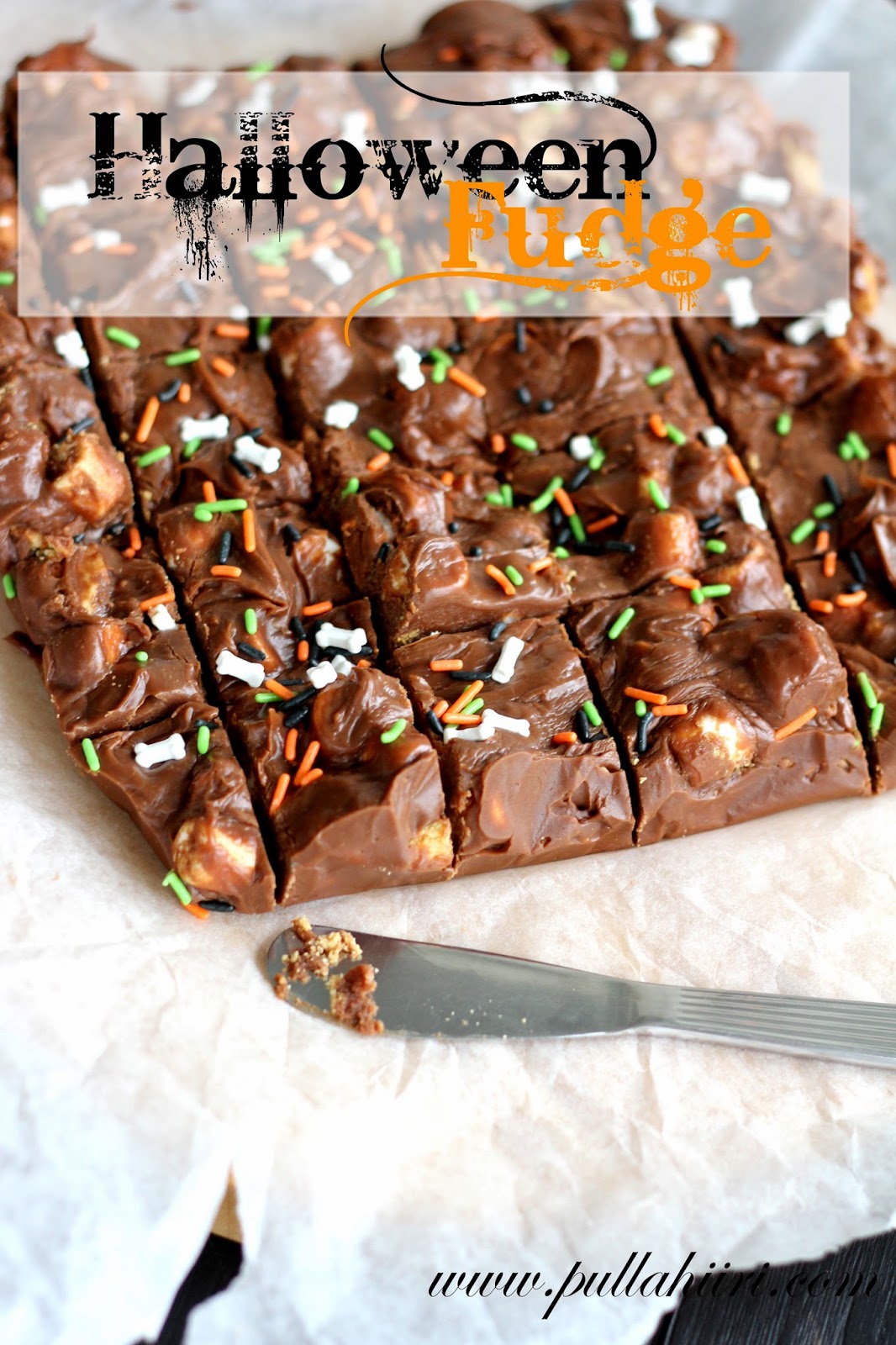 Fudge on ihanan makea karkkiherkku, joka ainakin meillä on liittynyt vahvasti jouluun ja joulun ajan syötäviin lahjoihin. Nyt kuitenkin Halloweenin lähestyessä teimme 8v. tyttäreni kanssa halloween-teemaan sopivan rocky road-tyyppisen fudgen. Meillä tytär on innostunut kovasti kavereiden kanssa "rokirousta" eli Rocky Road-herkusta. Sitä on valmistettu kavereilla kylässä ollessa ja nyt neiti halusi sitten valmistaa "rokirouta" kotonakin. Näin ollen kotona, valmistimme rocky road-fudgea Halloweeen teemalla. Tämä sopi hyvin sekä äidille että tyttärelle.